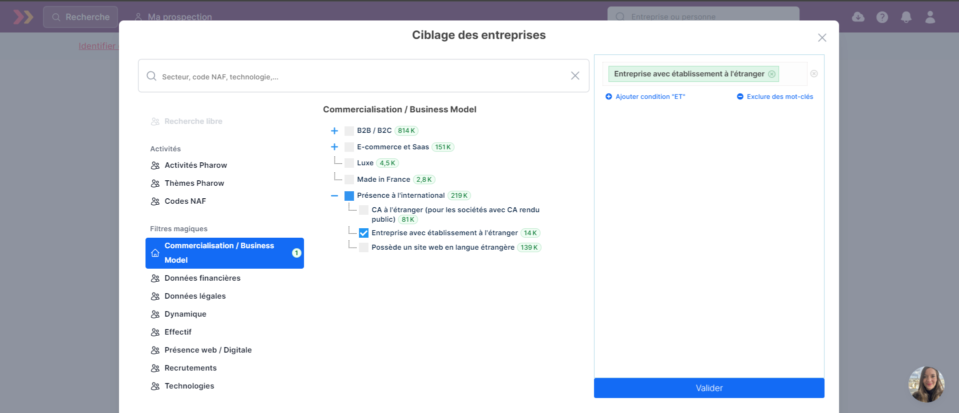 Je ne sais pas si ça va t’aider, sur Pharow tu as un filtre « entreprise avec un établissement à l’étranger »