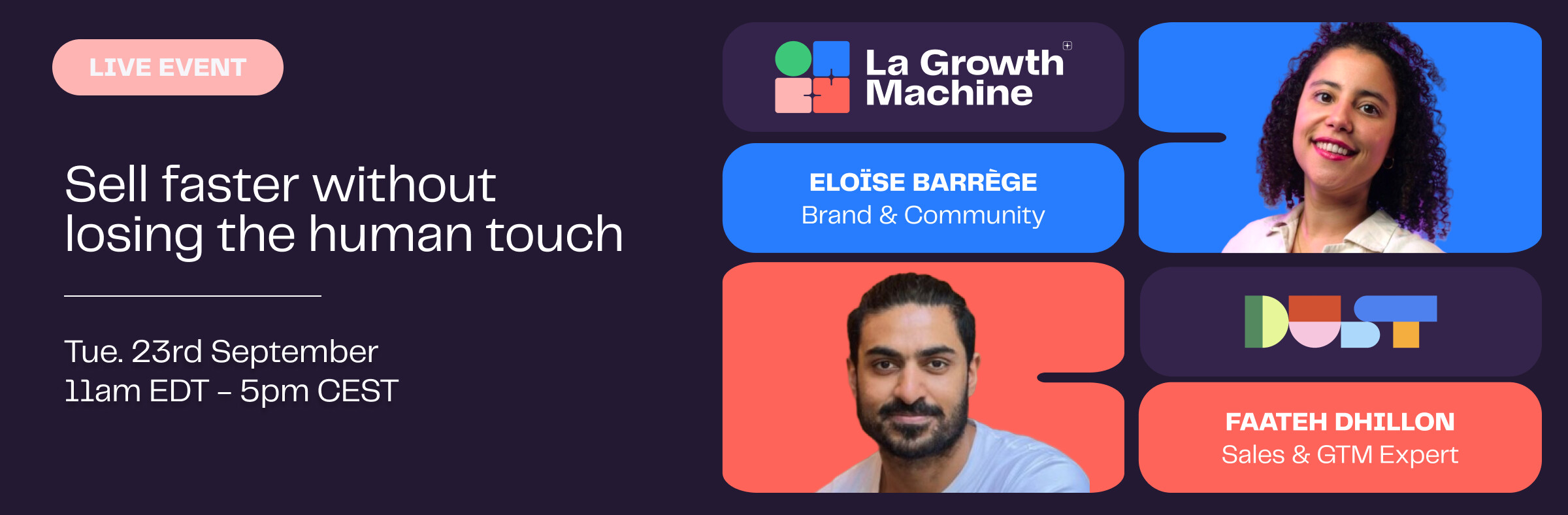 In this live session, we’ll show you how La Growth Machine and Dust unlock a new way of working for SDRs and AEs, blending automation, enrichment, and AI-driven workflows.